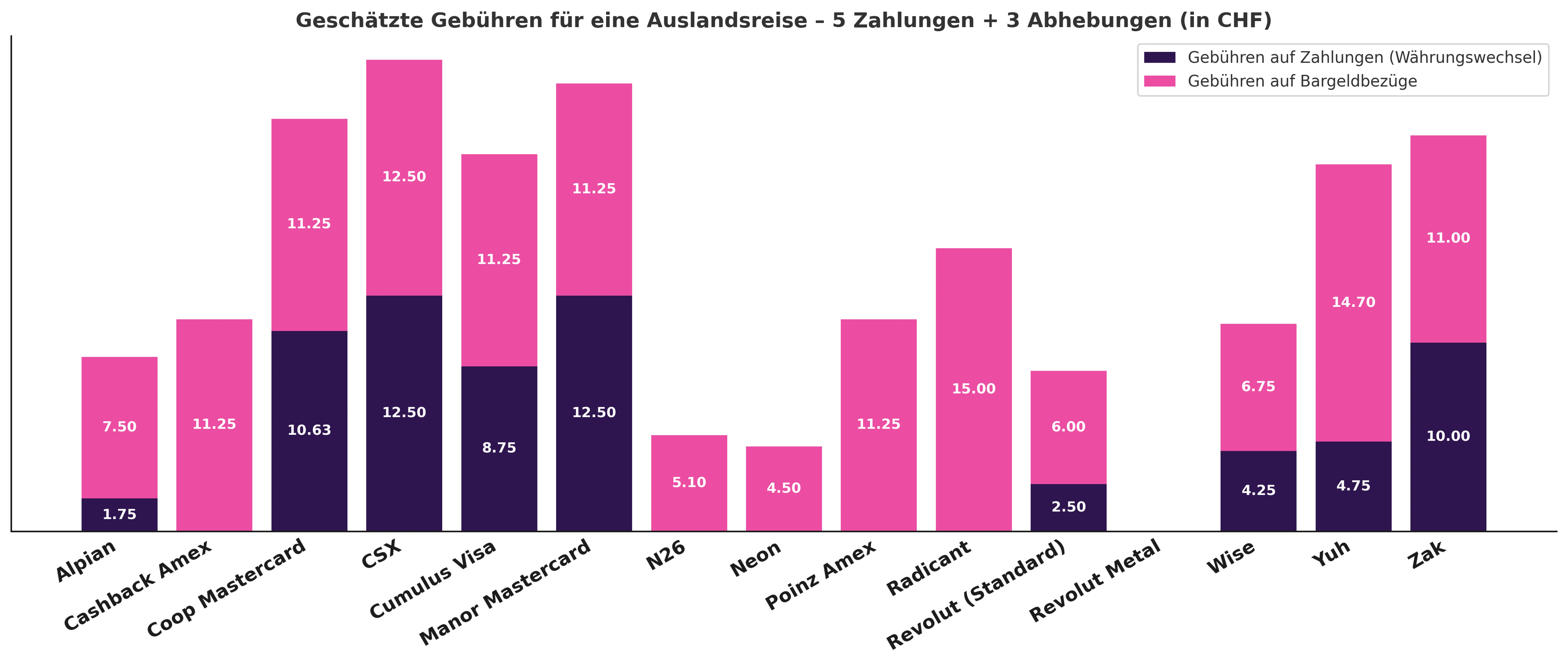 - Abhebungen: Gleiche Gebühren wie in der Schweiz (3,75% oder min. 5-10 CHF), aber manchmal mit Wechselkurs- oder Bearbeitungsgebühren.